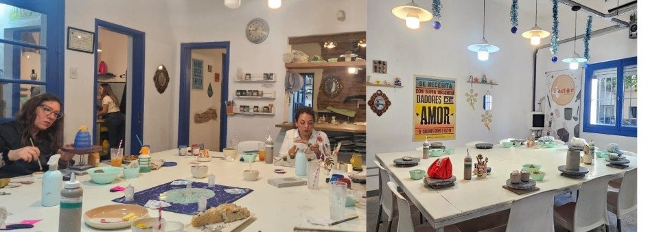 Creamos un taller luminoso, cálido y cuidado en cada detalle. Para nosotras, el ambiente es parte fundamental del proceso creativo. Hay luz natural, música suave, mesas amplias y tiempo sin apuro. Buscamos que cada persona se sienta cómoda e inspirada Porque creemos que para crear, el espacio importa 💛